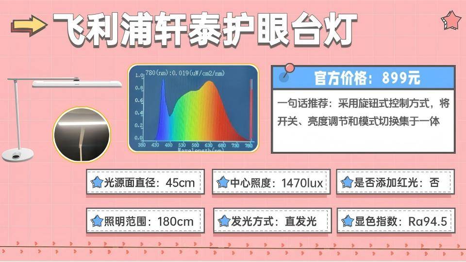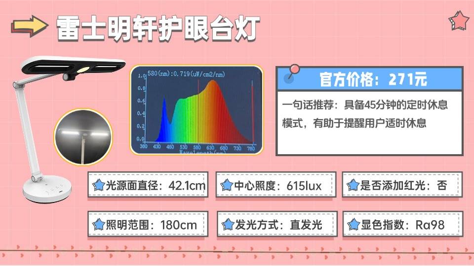 一句话推荐:发光面直径为21.5厘米,足以满足100厘米长桌面的照明需求