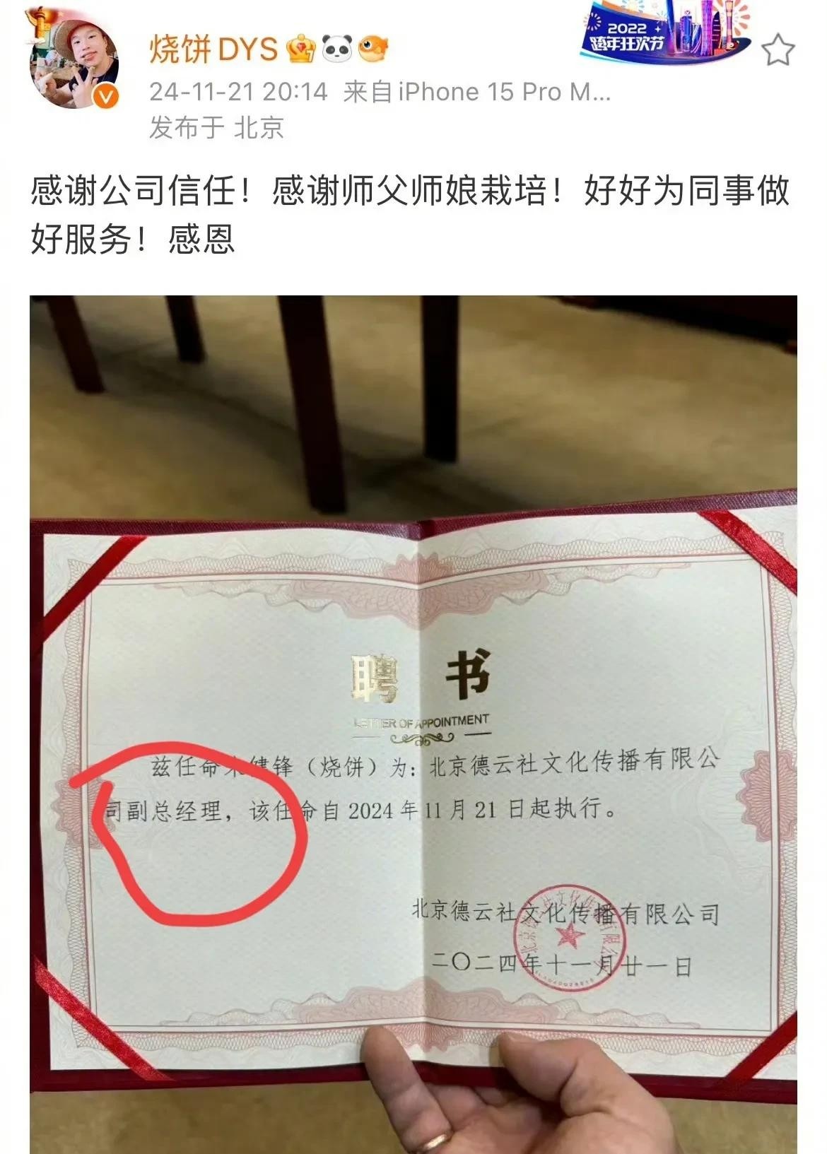 德云社最近可是出了个大新闻!一边是烧饼(朱云峰)喜提公司副总,一边是郭德纲的亲儿子郭麒麟依旧“无官一身轻”,甚至连个小职务都捞不到。
