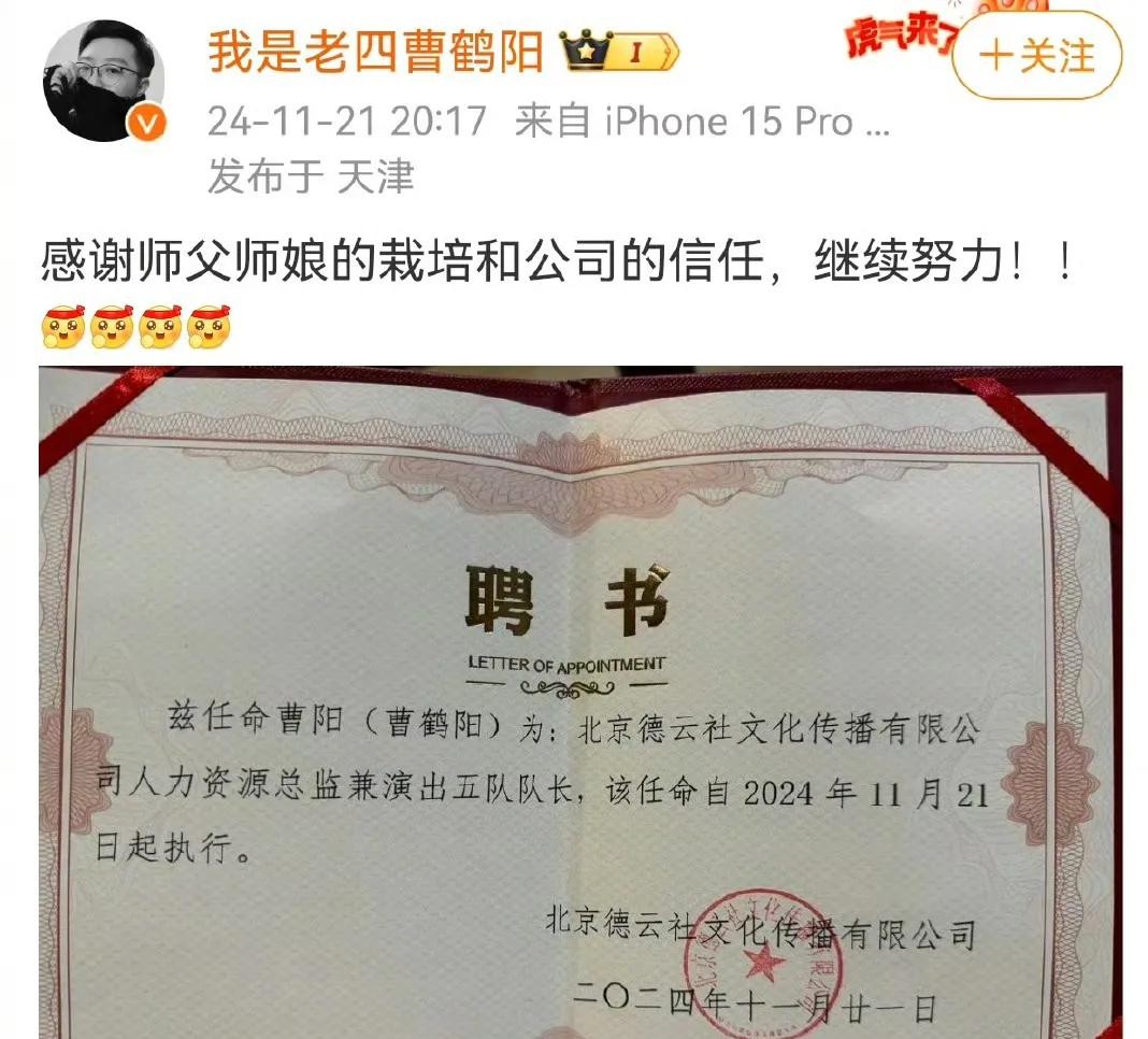 对于这次升职,他表示会更加努力,为德云社的发展贡献力量。尽管争议不断,但曹鹤阳的升职,也让他成为了这场“洗牌”中的赢家之一。