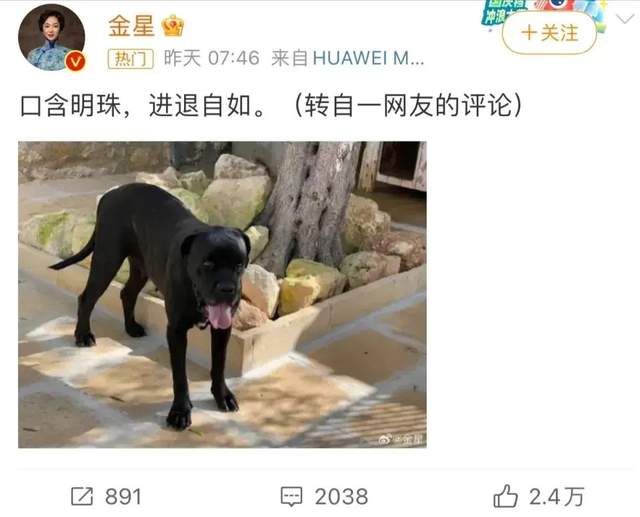 11月14日,金星发微博“口含明珠,进退自如。”,并配了一张黑狗吐舌头的图片。被网友认为是在暗讽董明珠和王自如,引发网友热议。