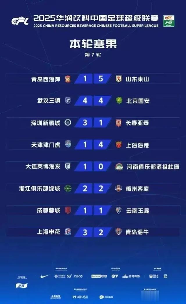 2025赛季中超第七轮最佳阵容(3-4-3阵型)及关键亮点: