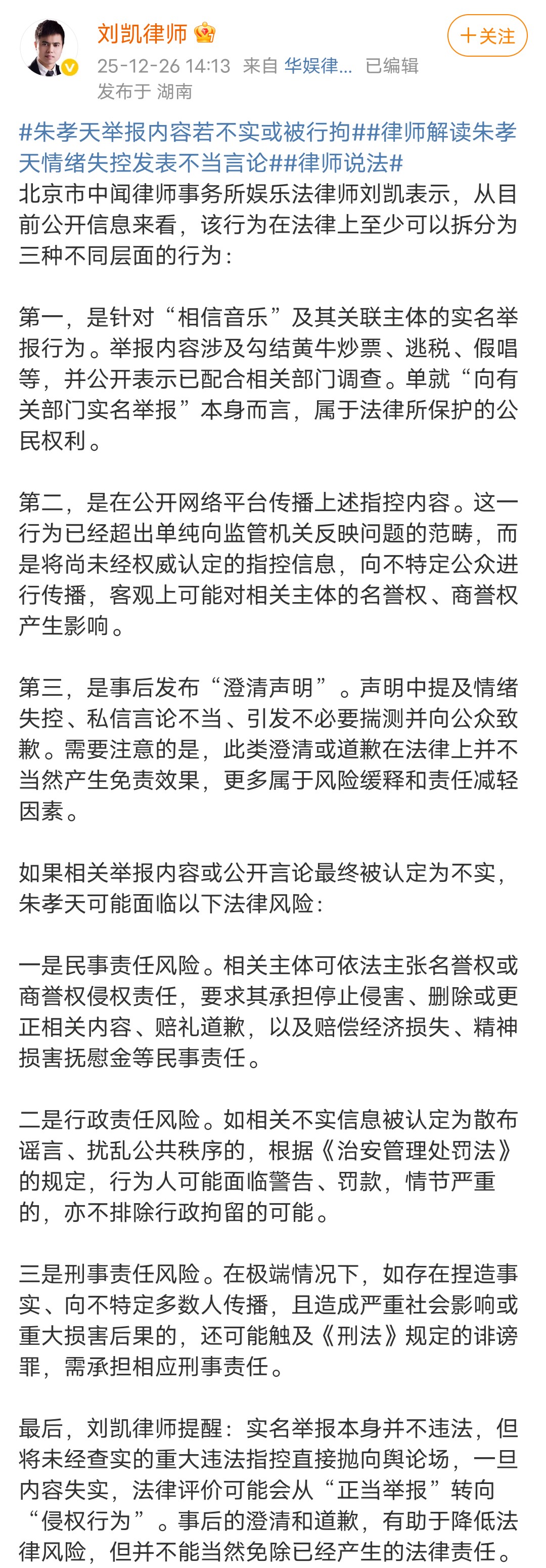 律师指出若举报不实,其行为可能涉及散布谣言、诽谤罪,面临行政拘留或刑责,“情绪失控”不构成免责依据。