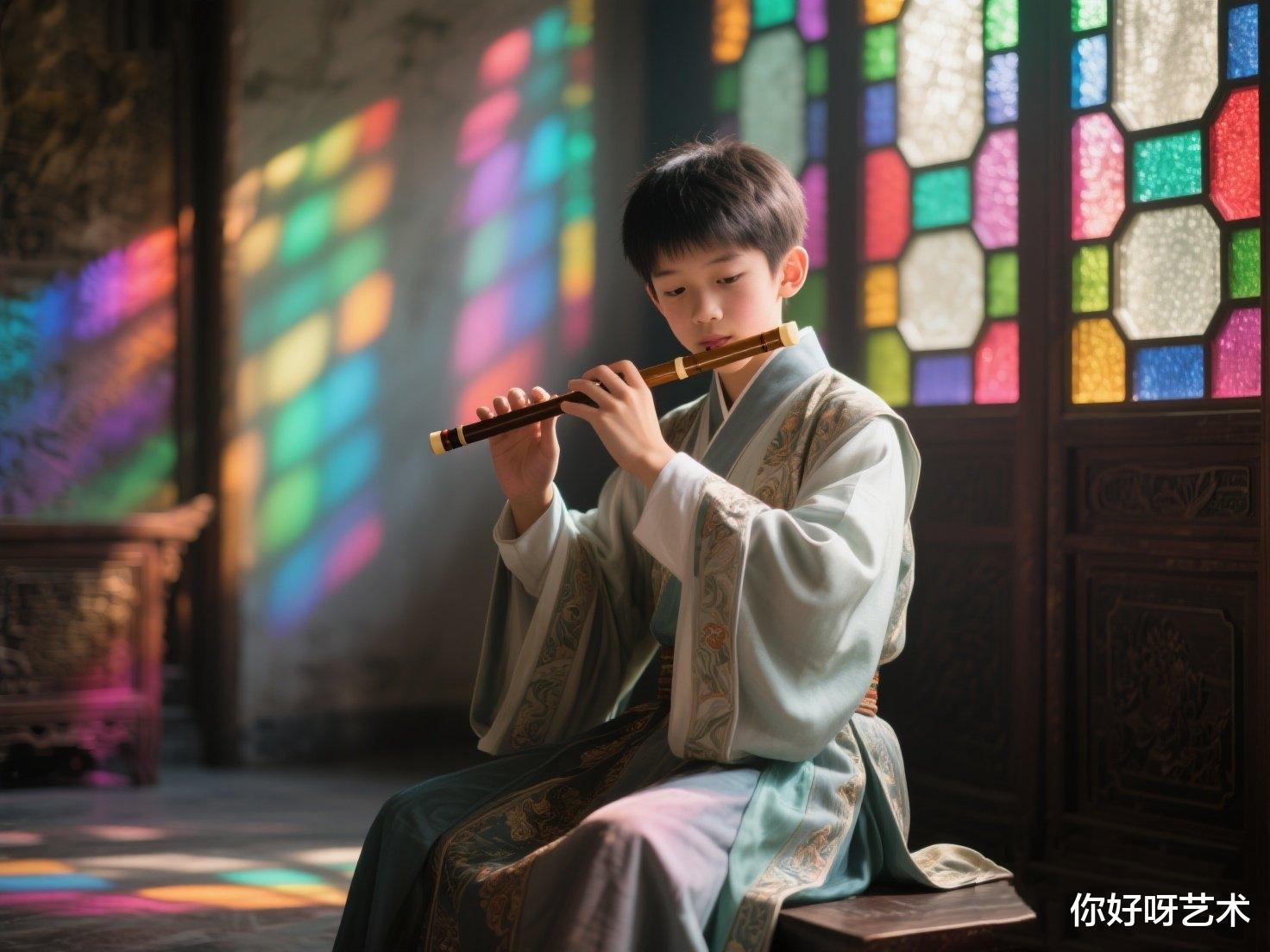 少年的形象刻画入微。他身着深色的制服,那制服的颜色浓郁而深沉,像是被夜色浸染过一般。然而,在马奈的笔下,这深色并没有给人压抑之感,反而衬托出少年的庄重与专注。制服的线条简洁流畅,每一道褶皱都仿佛是少年身体动态的自然延伸,随着他吹奏笛子的动作而微微起伏,似乎也在应和着那悠扬的笛声。他的脸庞轮廓分明,表情平静而专注,眼睛紧紧盯着前方,仿佛沉浸在自己吹奏的音乐世界里。那微微鼓起的腮帮子,是他吹奏时用力的证明,生动地展现出少年的投入。