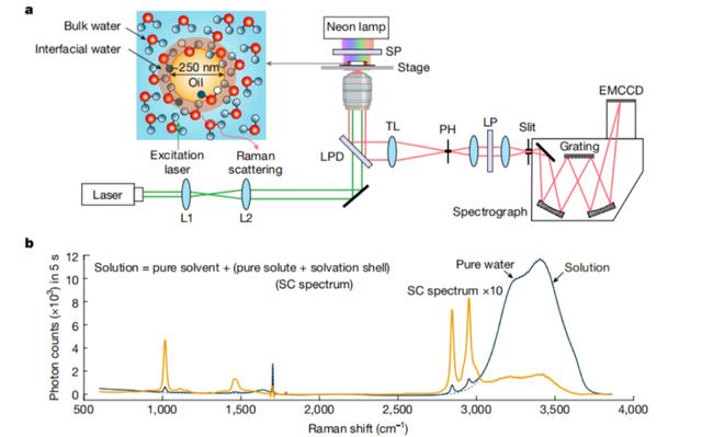 他们基于开发的新型拉曼光谱技术,揭示了水油界面处水分子的独特结构和强大的电场。