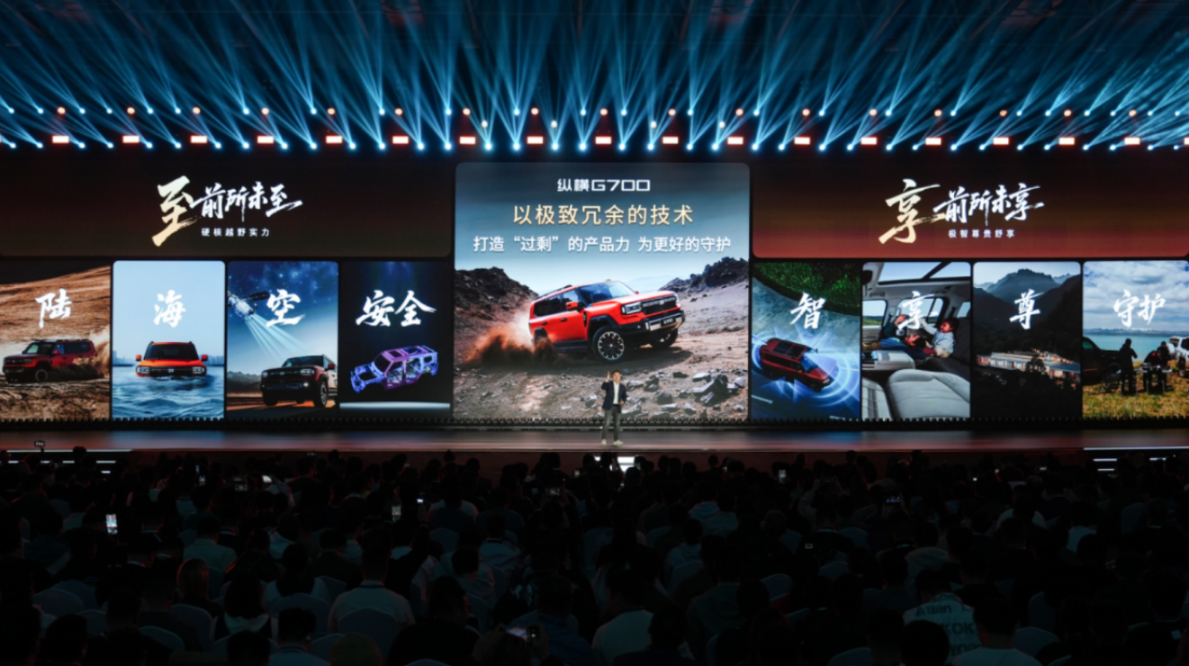 纵横G700横空出世,融合硬派越野与城市SUV二者之长,把陆地驰骋的强悍、水域穿越的从容及高原缺氧等复杂环境的卓越适应性集于一身,开辟了“全领域豪华越野SUV”新赛道,成为中国汽车工业突破豪华天花板、定义全球豪华越野标准的新坐标。