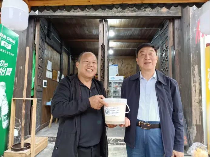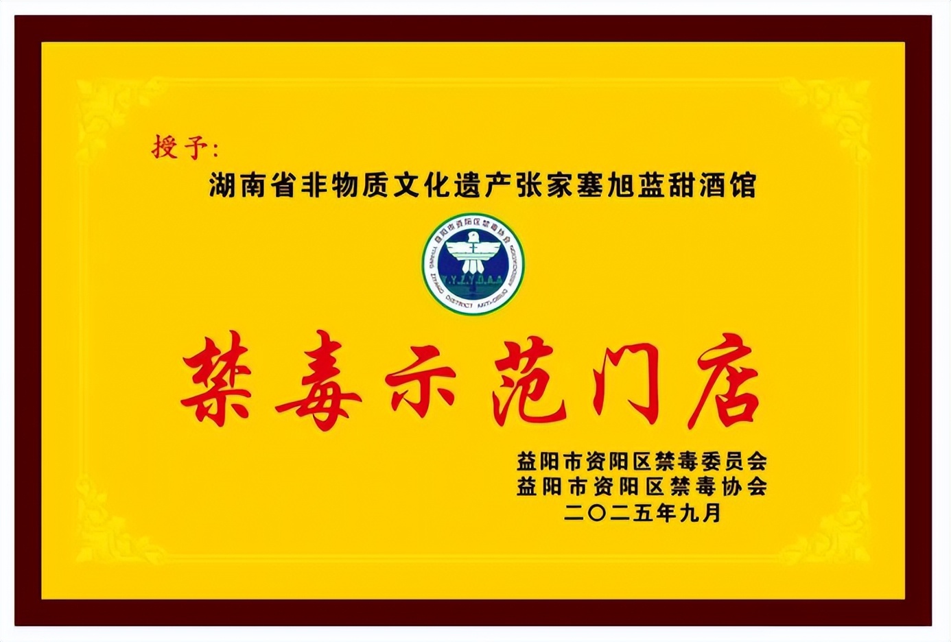 10月22日上午,益阳市资阳区禁毒工作机制办、区禁毒协会联合授予省级非遗旭蓝甜酒工作坊“禁毒示范门店”称号。益阳市禁毒协会会长曾立坤、资阳区禁毒协会会长张定援为省级非遗旭蓝甜酒授牌。益阳市禁毒协会副会长兼秘书长罗从先,副会长邓惜春、赵翔等领导出席。乡贤郭春生表示,当禁毒知识遇上甜酒美味,省级非遗宣教便融入一日三餐。