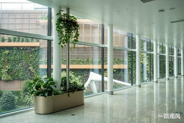 出发大厅的屋顶遮阳板采用稻穗造型,值机岛台为木棉花开造型,呼应“花开穗满”的设计创意,线条感、空间感、艺术感、文化感等方面都很赞。最大的惊喜是随处可见绿色。穿行大厅,好像进入充满生态美感的花园,无比美妙且心旷神怡。