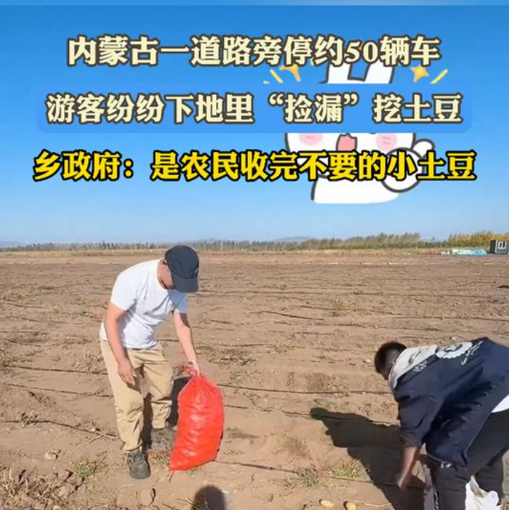 当人类还在跟文旅乱象斗智斗勇,内蒙古某国道旁的田野却在上演暖心大戏。近日,大量自驾游客把车停在路边,排着队进田捡拾农民遗落的土豆,乡政府不仅没驱赶,还解释 「“这些是农民放弃采收的,不影响收成”」。