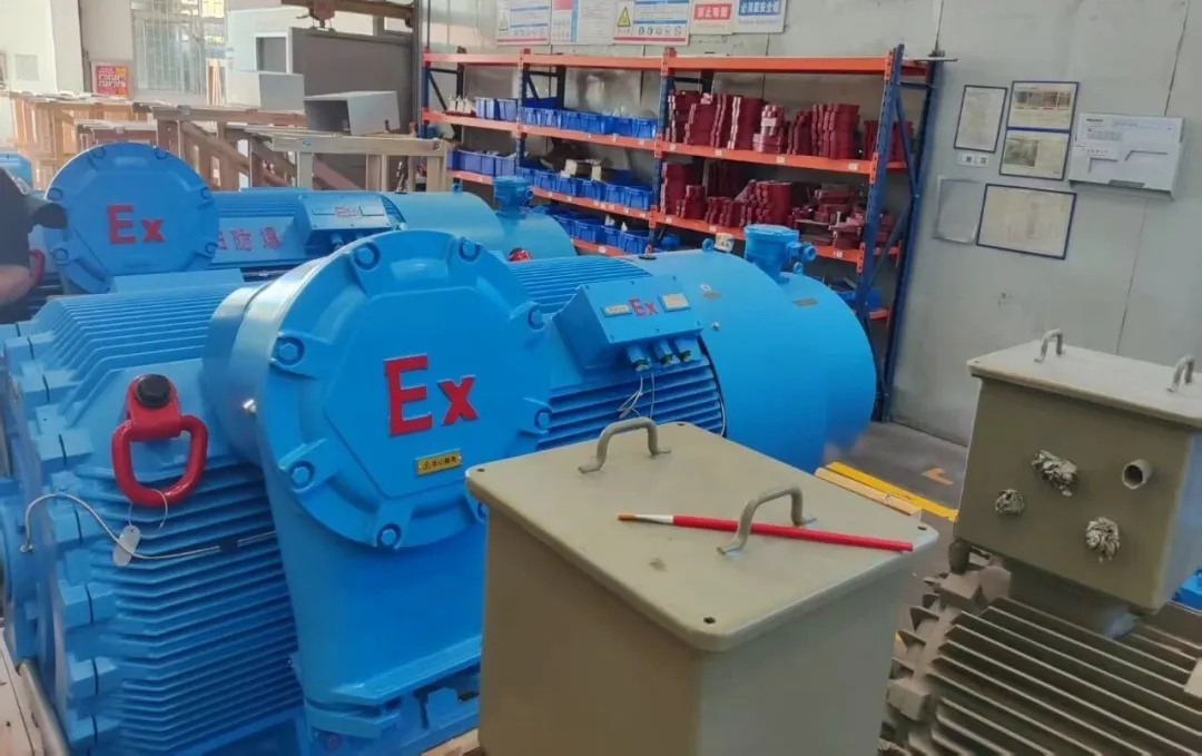 此外,在粮食加工(面粉粉尘)、金属粉末生产(铝粉、镁粉)等可燃粉尘环境中,部分隔爆型电机可兼具粉尘防爆认证,用于驱动粉碎机、输送机等设备;在户外场景(如石油钻井平台、煤化工露天储罐区),需选用高防护等级的隔爆电机,应对露天风雨、粉尘等恶劣条件。