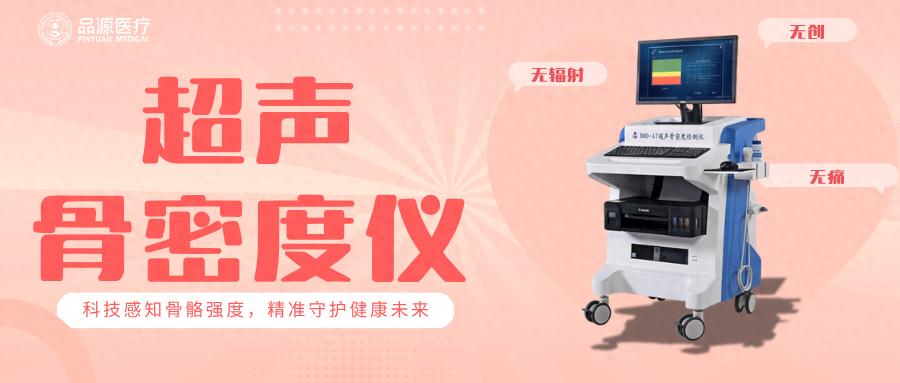 品源医疗超声骨密度仪BMD-A7:专业认证保障品质品源医疗超声骨密度仪BMD-A7是一款经过国家食品药品监督管理总局注册认证的专业检测设备。这一认证是对设备安全性和可靠性的严格把关,为设备在临床应用中的稳定性和有效性提供了坚实的基础,让使用者能够放心地将其应用于各类骨密度检测场景。技术特性与临床实用性深度融合检测安全无辐射该设备采用了先进的超声技术,通过精确测量声波在骨骼中的传播速度(SOS)和衰减程度(BUA)来评估骨密度。与传统的X射线骨密度检测方法相比,超声检测全程无辐射风险,不会对人体造成任何潜在的伤害。更适用于孕妇、儿童、老年人等对辐射较为敏感的人群,能够满足他们重复检测的需求,为长期跟踪骨骼健康状况提供了安全可靠的手段。检测高效且精准