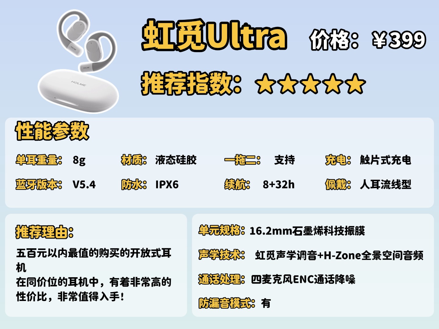 这 5 款开放式耳机,我替你试过了,放心冲!虹觅 HOLME Ultra售价:399 元