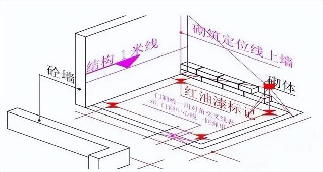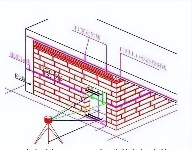 A22:砌筑前,利用激光扫平仪将地面门洞定位线弹到梁侧,将建筑1m线传递到梁侧控制门洞标高。