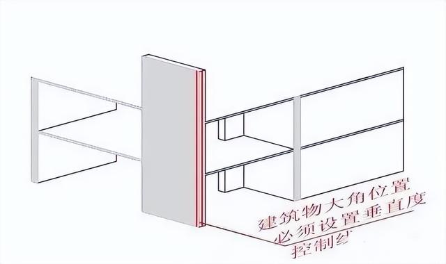 A17:建筑物大角位置设置垂直度控制线,控制线距墙边100mm。