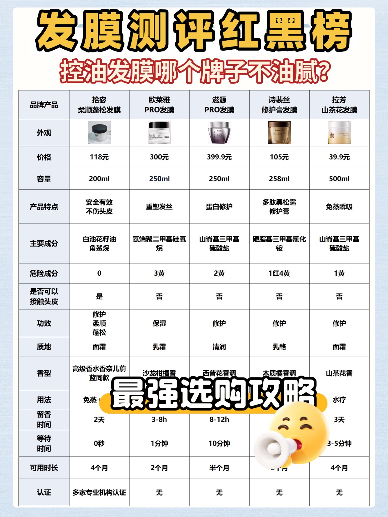 油性头发选发膜最愁会不会越用越油,还想知道怎么用才能又顺滑又不塌,这两个问题我测了十几款产品后终于摸透了。发膜会不会让头发变油,主要看成分和用法,油性发质选无硅油、质地轻盈的,避开厚重矿物油,不然容易堆积在发丝上显油。用法上千万别涂发根,洗完头擦到不滴水,只涂发中到发梢,停留3-5分钟就冲净,冲不彻底也会闷得头发发油。还有个误区,油头别觉得不能用发膜,干枯发梢反而会让头皮代偿性出油,选对款每周用1次,既能抚平毛躁又不加重油腻。下面是我总结的油性发质发膜选购注意事项,帮大家精准避雷,记得收藏慢慢看。