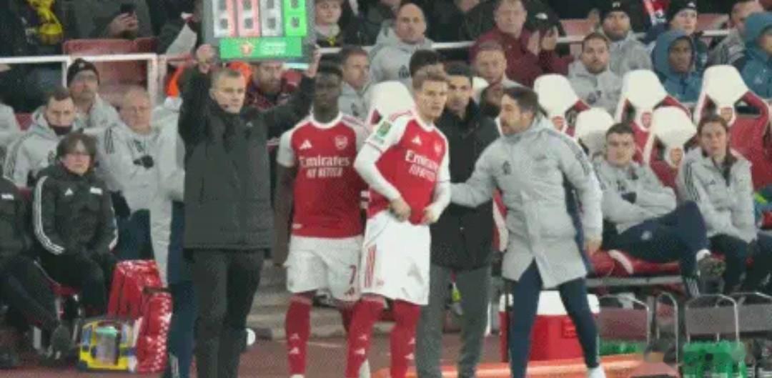 下半场易边再战,阿尔特塔做出换人调整,特罗萨德、厄德高和萨卡分别换下了马丁内利、埃泽和马杜埃凯。