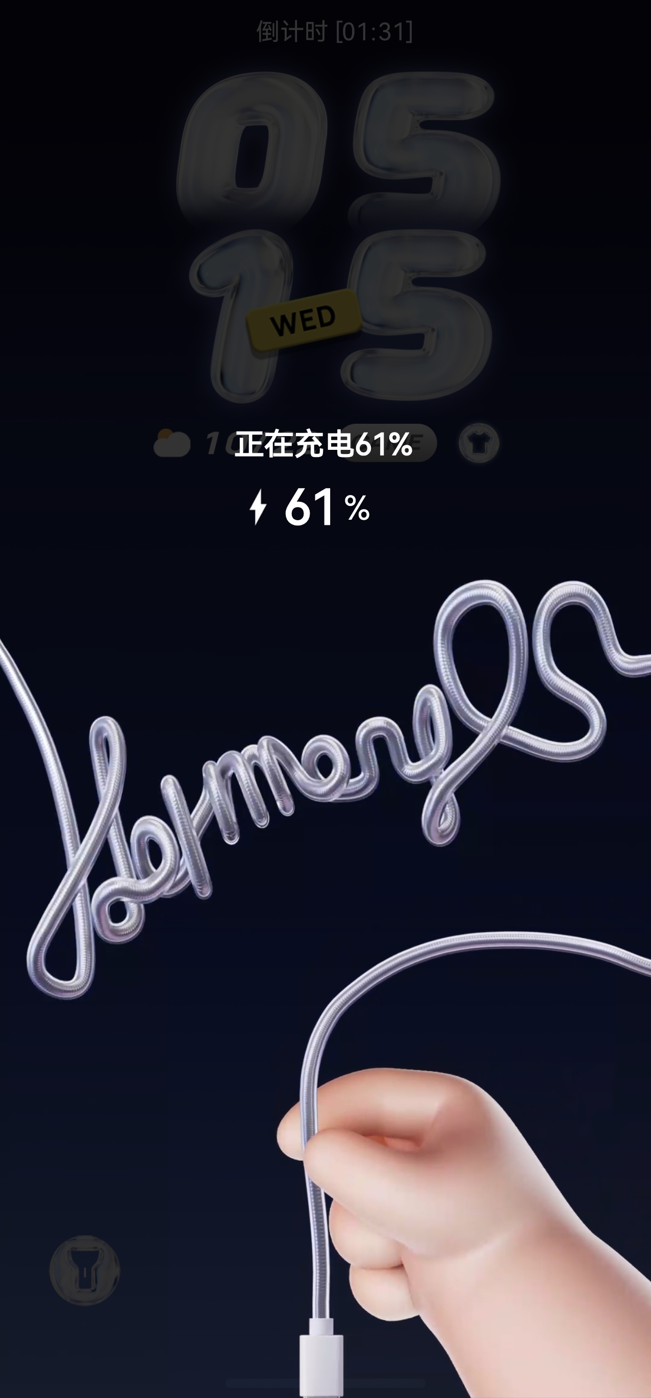 除此之外,我比较喜欢它的这个充电动效,亮闪闪的电线拼出HarmonyOS 6的字样。最后那根线刚好连到充电口的位置,细节拉满。要是身边也有人用这个主题,碰一碰还能触发不同的动画彩蛋。