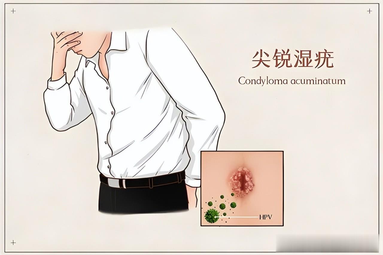 生殖器出现的异常改变,其实是男性感染 HPV后最典型的症状,在生殖器、肛门附近出现尖锐湿疣。