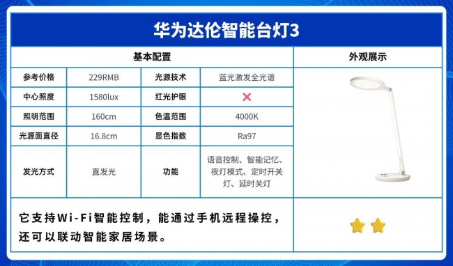 代表型号:华为达伦智能台灯3