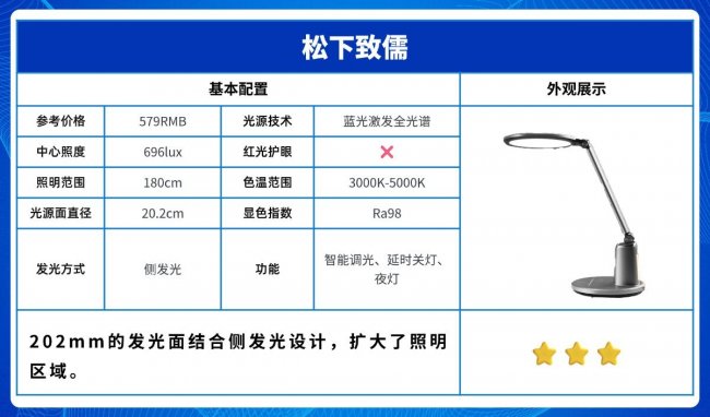 推荐理由:通过202mm的发光面配合上侧发光技术,扩大了照明空间。