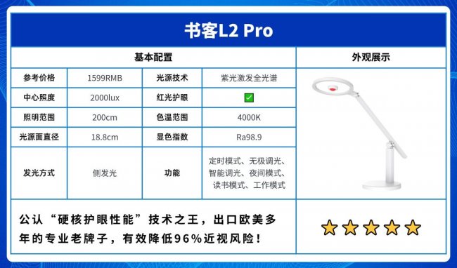 代表型号:书客护眼台灯L2 Pro