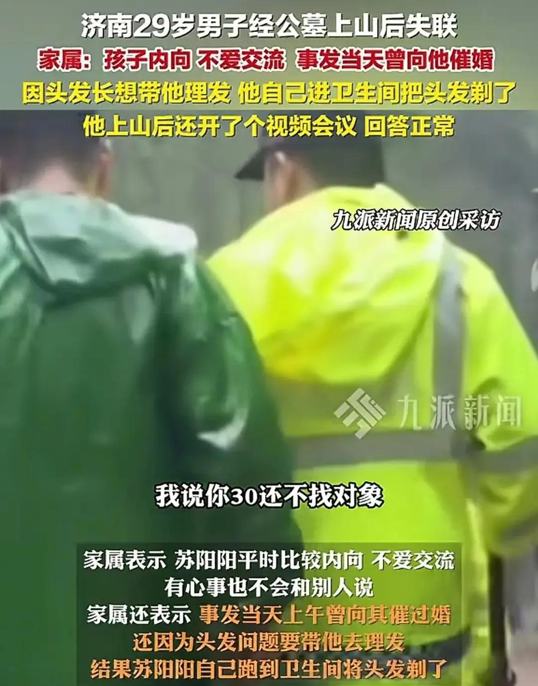10月4日中午,是这场悲剧的起点。29岁的苏阳阳毕业于211大学,本应有着光明的人生轨迹,却因“人生大事”与家人产生分歧——父母盼他早日成家,他暂无意向,争执在家中爆发。亲属描述,苏阳阳性格偏内向,与母亲吵完后,剃了光头独自离家。起初,父母以为他只是“闹脾气散心”,没太在意,直到当晚仍不见他回家,拨打电话提示关机,才慌了神,起初时间报了警。