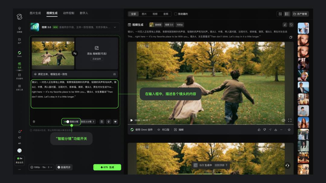 可灵O1作为首个大一统的多模态创作工具,整合了文字、视频、图片、主体等多模态输入,实现生成与编辑的一体化;可灵2.6的“音画同出”能力,颠覆了传统视频制作“先画面后配音”的生成流程,动作控制功能更是引发全球关注。