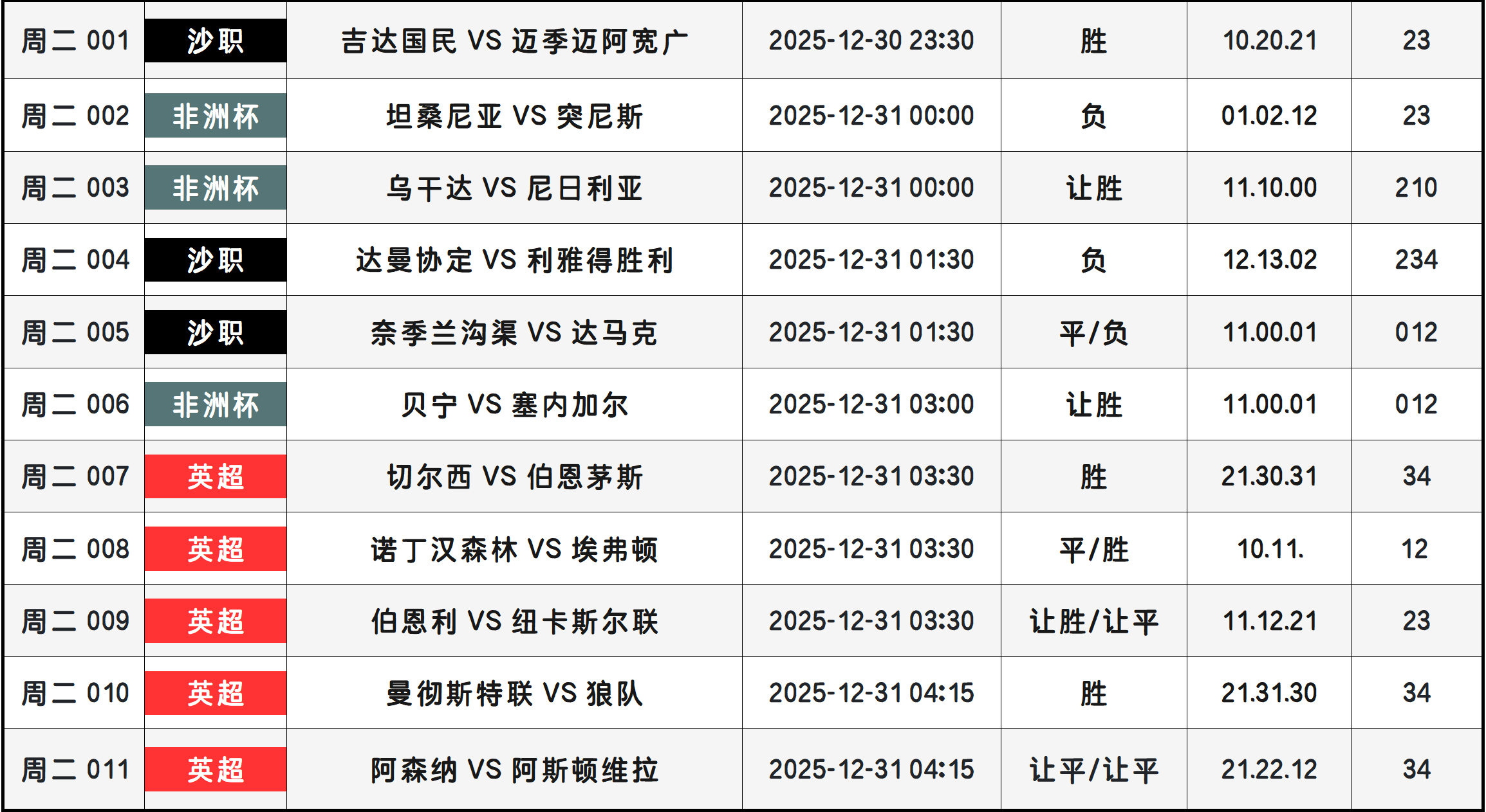 【七哥体育|足球推荐】12月30日周二【足球前瞻心水方向】
