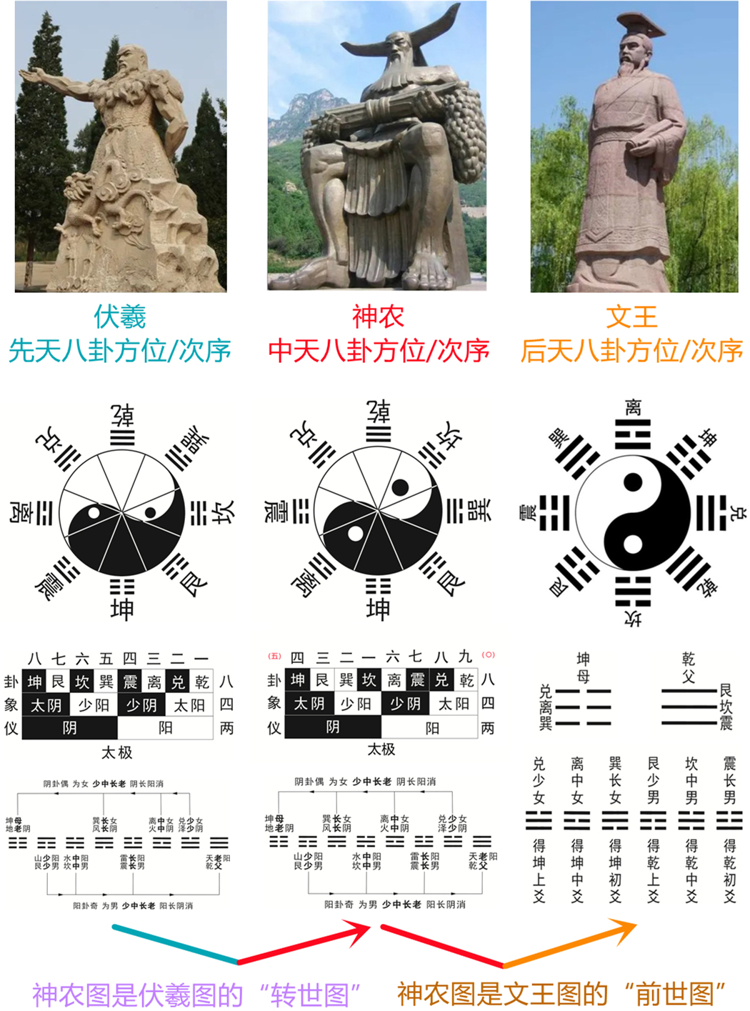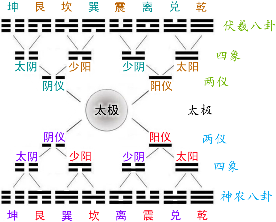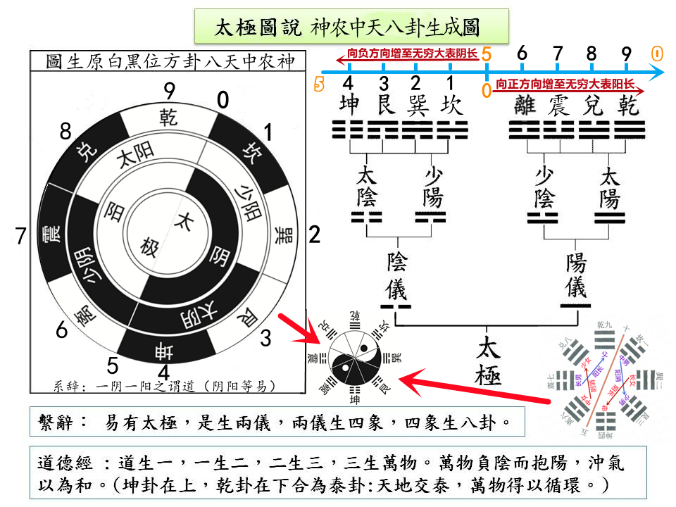神农八卦太极图及八八六十四重卦示意(一分为二、全息、阴阳等易律)