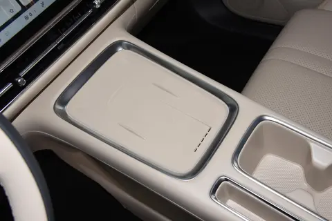 内饰方面,缤果S延续了“静奢栖居美学”的设计理念。两种内饰配色,柔白与暖棕,分别营造出北欧极简与时尚高级的氛围。柔白款视觉明亮,配以3D质感木纹装饰,增添温暖与质感;暖棕版本则在色调上更显成熟与高级。大量软质包覆材料覆盖车厢,手感细腻,整体质感不错,尽管个别区域仍有硬塑料点缀,但并不影响整体的档次感。中控以12.8英寸2K高清触控屏为主,8.88英寸的全液晶仪表盘作为信息承载,显示与操作都相对直观。车载系统搭载五菱自研LingOS灵犀系统,内置DeepSeek语音大模型与灵语AI 2.0,语音识别在粤语、四川话、重庆话、陕西话等方言环境下表现突出,准确率约95%,响应可达0.3秒,这对于日常操控、尤其是对不熟悉普通话的家人使用场景,显著提升了便利性。50瓦风冷无线充电板是我个人非常欣赏的功能,手机放上去就能充电,充电过程中的温控也处理得当。无感进入功能、外后视镜加热与自动折叠等细节也提升了日常使用的便利性。车内配有多种场景模式,包括通勤、露营、小憩、抽烟和雨雪五大定制化模式,一键切换即可根据不同场景自动调整设置,简化日常操作流程。