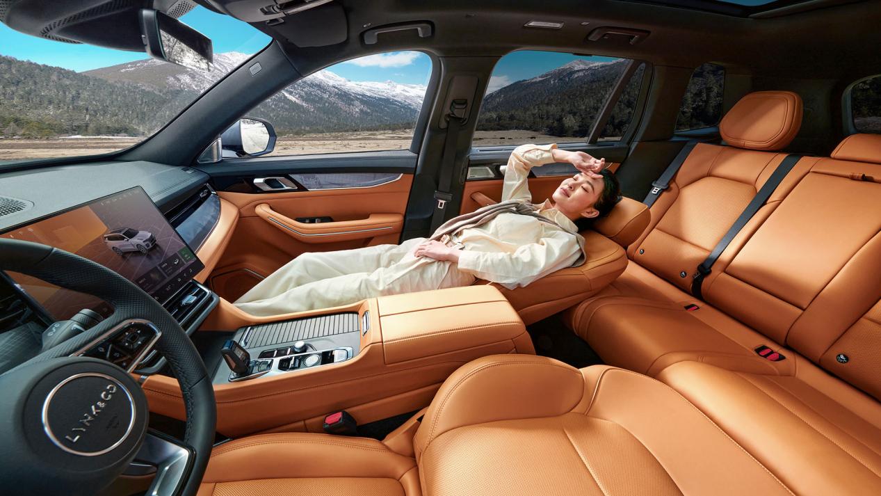 在5042mm车长与2984mm轴距的底盘基础上,领克09将空间利用效率推向新高度。第二排座椅横向宽度达1366mm,配合540mm同级最深坐垫,即便三人同乘亦能保持宽松体感。NAPPA真皮材质包裹的座椅搭载8点式按摩、三档通风加热功能,配合副驾280mm电动腿托(支持56°倾斜调节),将长途乘坐体验提升至豪华轿车水准。