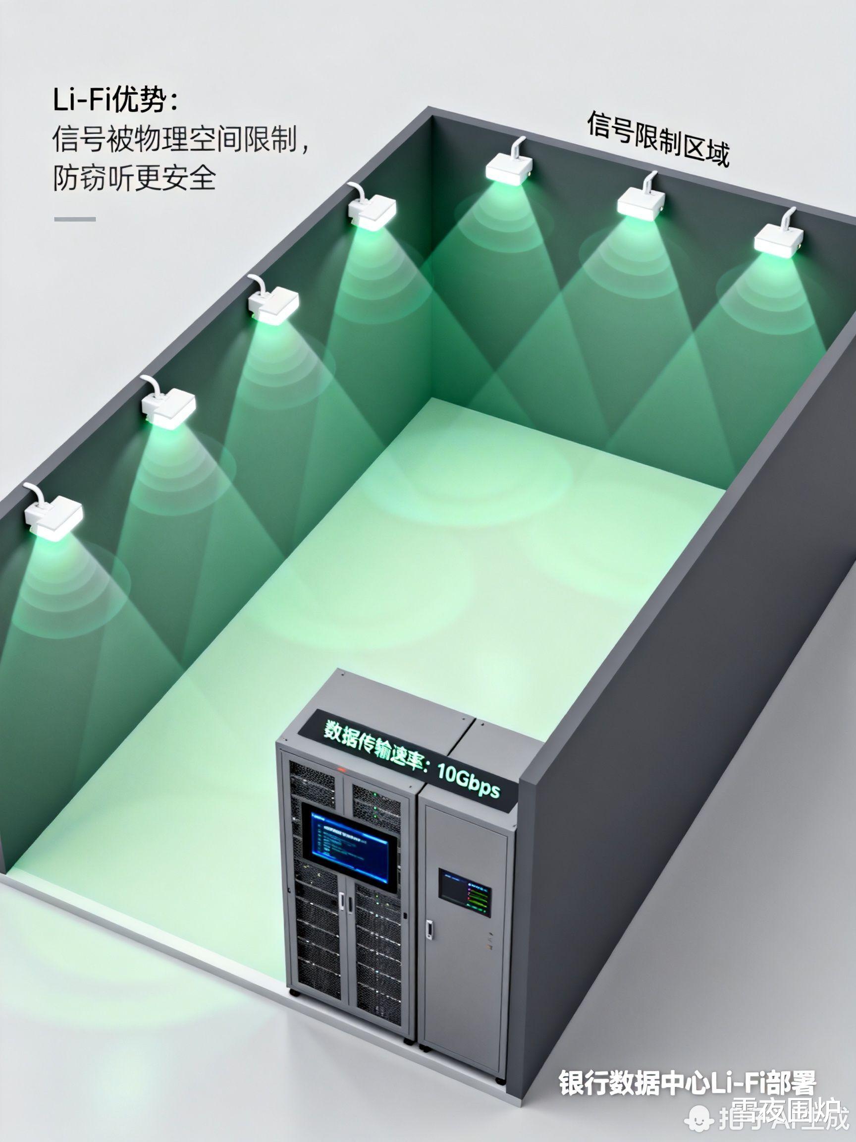 2025年德国某银行的数据中心,Li-Fi取代Wi-Fi后,黑客再也无法在墙外“蹭网”。因为光线无法穿透墙壁,信号被牢牢锁在房间内,安全性比Wi-Fi提升80%。这一特性让它成为军事、金融领域的“香饽饽”——美国国防部已在12个基地部署Li-Fi通信系统。