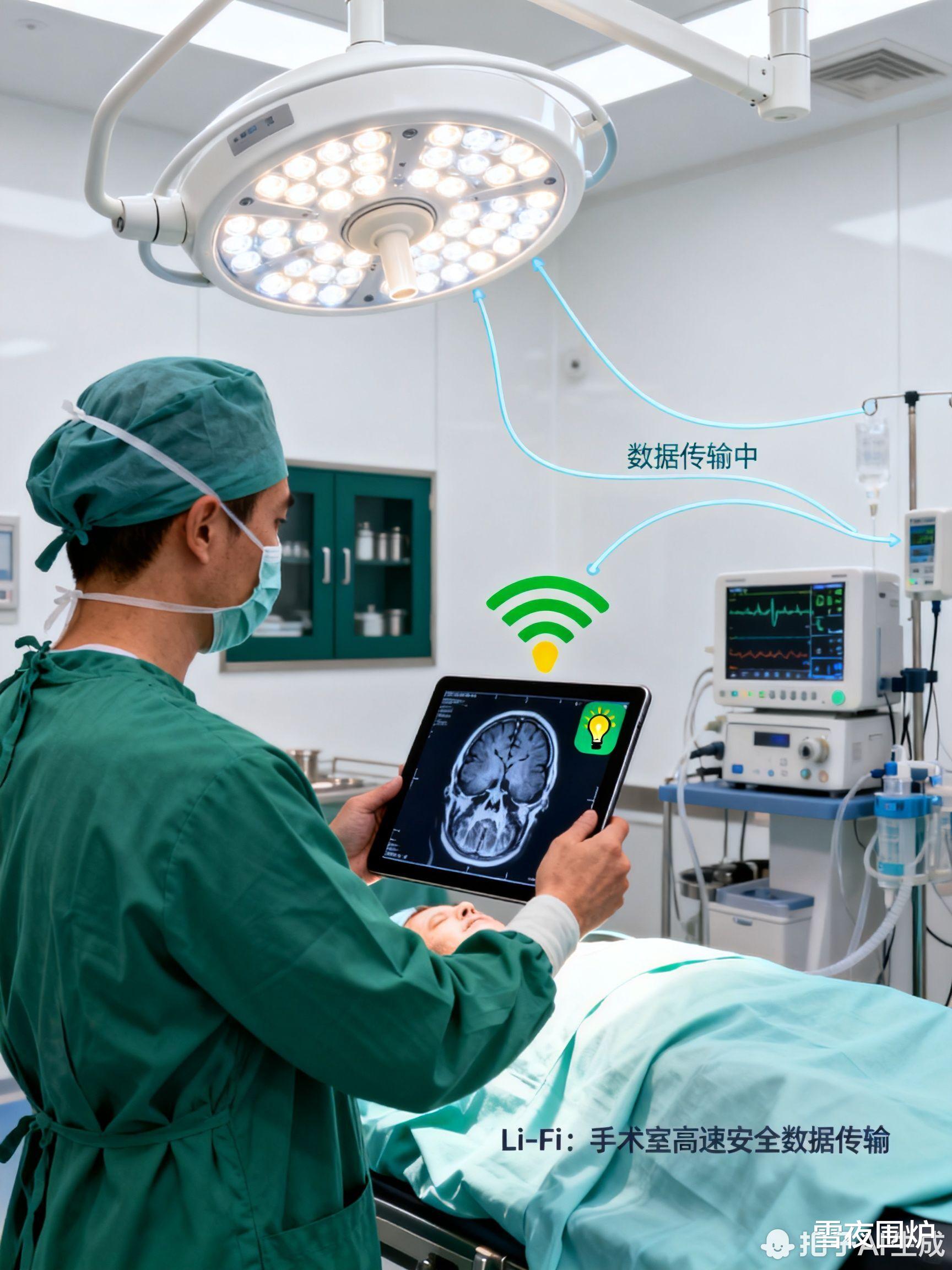 在法国佩尔吉涅医院的手术室里,Li-Fi正成为医生的“隐形助手”。由于传统Wi-Fi信号会干扰心电监护仪,手术设备曾陷入“断网困境”。而Li-Fi用LED灯传输数据,既避免电磁干扰,又能实时同步病人CT影像,传输速度达1.2Gbps——相当于1秒下载3集《甄嬛传》。