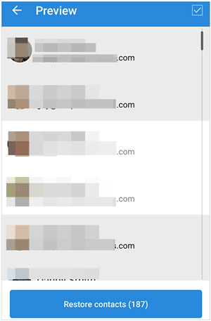 步骤 3:点击底部的“恢复”将联系人导入到您的Android设备。