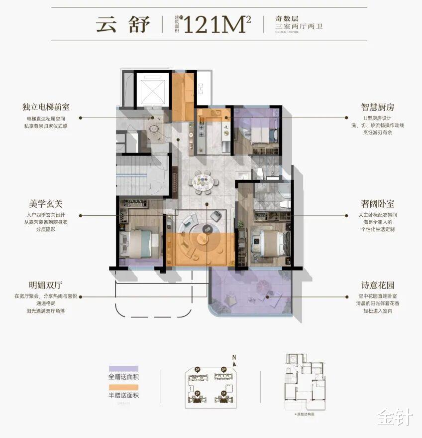 约121㎡户型,有着开阔通透的客餐厅,主卧标配独立衣帽间,卧室直连空中花园,为业主带来了改善级的舒适与体面。