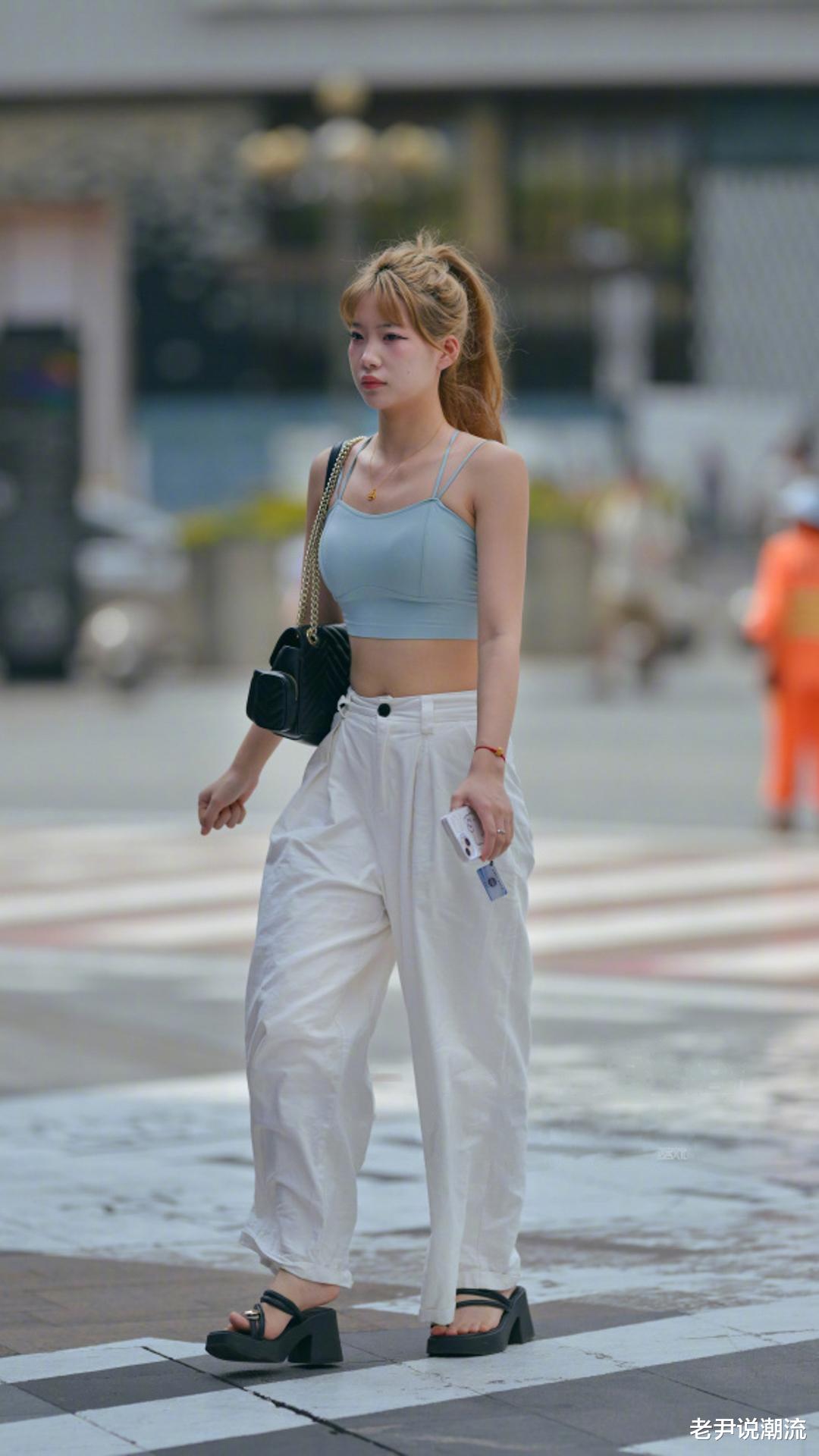 走在街头,你会发现一种奇妙的时尚风景 —— 吊带短衫配低腰裤的潮流正火热上演。年轻人们用这样的搭配,高调秀出自己的时尚态度。