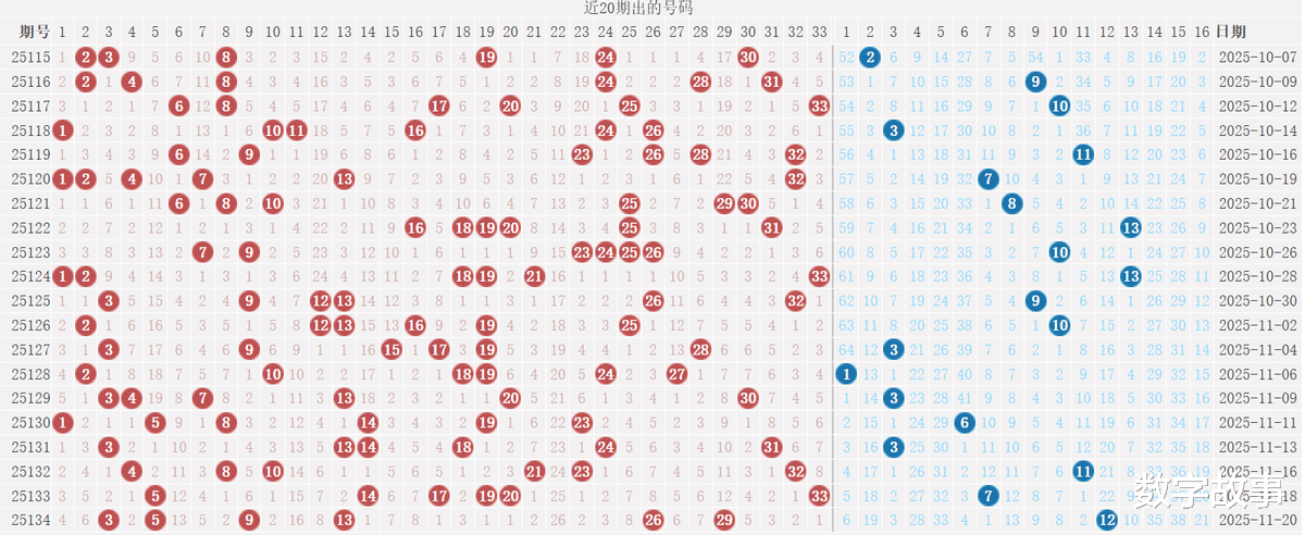 4) 双色球最近20期: