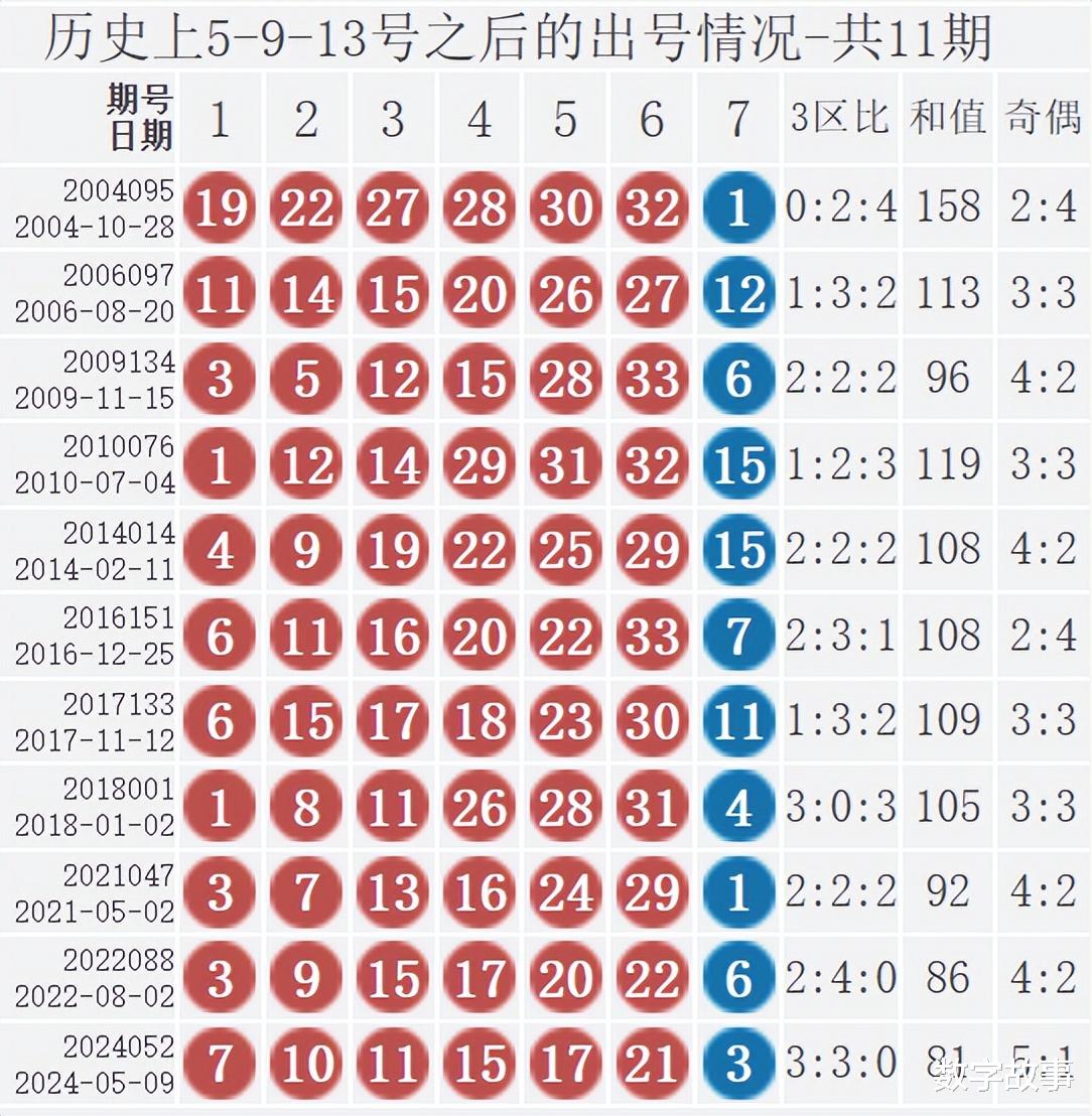 双色球红球含5-9-13历史统计