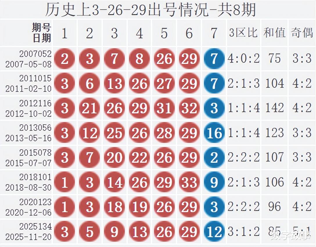 双色球2025134期红号在过去是否出现过?双色球2025134期红号: 3-5-9-13-26-29经查,历史上没有出现过与这一期6个红球或者5个红球号码一样的。与这一期4个红号一样的有15期,如下: