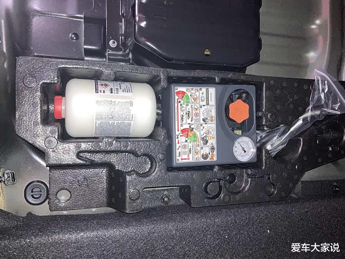 虽然有些车没备胎,但厂家肯定会配备一个打气泵以及一瓶补胎液以备不时之需,一般都会放在后备箱备胎槽里,这是法规强制要求的。
