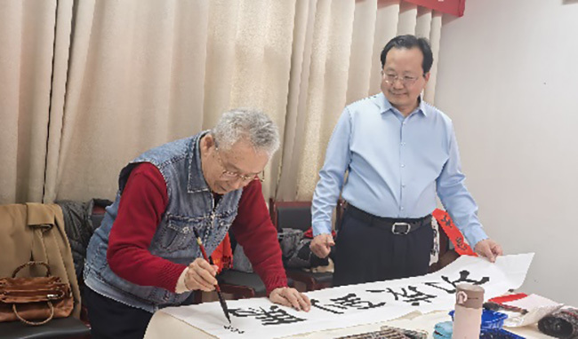 工休人员围拢观赏,按需定制专属墨宝,将节日祝福珍藏于心。活动尾声,全体工休人员与书法家共同合影留念,定格下这一祥和欢乐的瞬间。