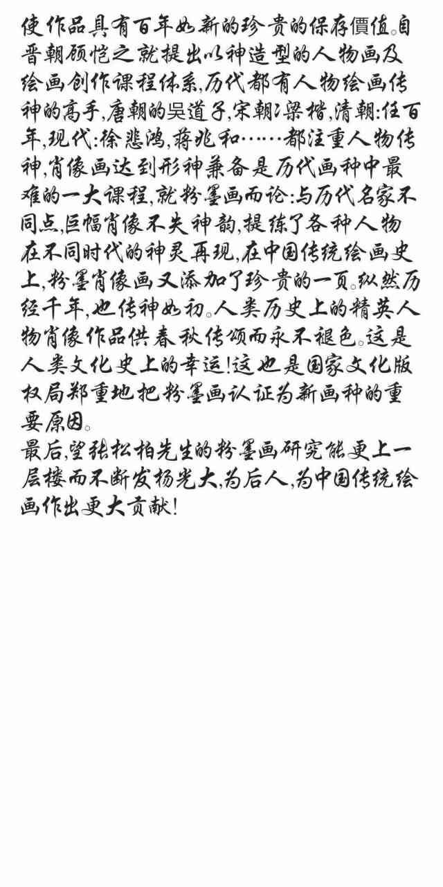 作为新时代的文艺工作者,张松柏以卓越的艺术才华和审美意境,体现了厚重的文化情怀、宏阔的文化气度、深沉的文化担当,用精湛的艺术语言,围绕时代和人民之需倾力创作,展现了中华民族气壮山河的伟大史诗,为新中国的文艺事业作出了积极贡献。
