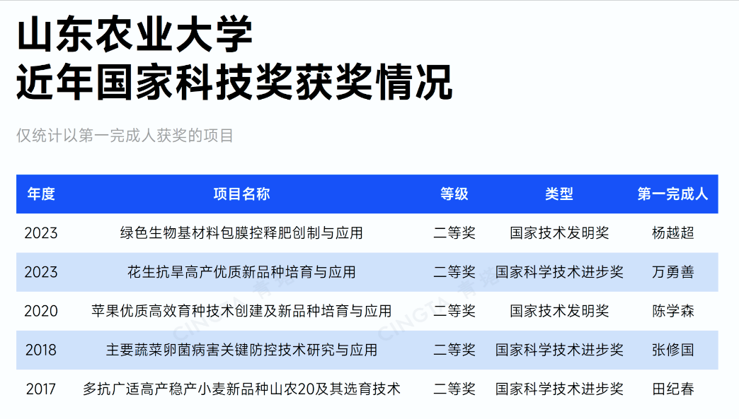 再讲讲成果这一块,2023年国家三大奖里,山农牵头拿到了2项二等奖(技术发明奖和科技进步奖),而且还参与拿到了1项科技进步一等奖,一所学校一下子拿到3项国家奖,这样的产出效率在农业类高校里头已经是比较突出的,并且这些成果不是那种实验室里的论文,控释肥技术已经在全国推广超过5000万亩,花生新品种还入选了国家骨干型品种成果转化做的挺踏实, 这在评审的时候可是会加分的。
