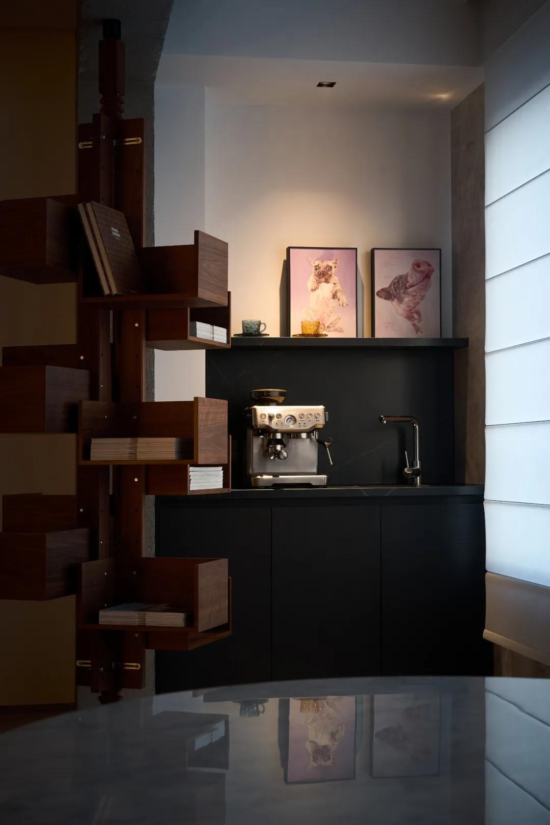 一盏暖灯、一处咖啡角,在音乐和壁炉的感官渲染下,为好友相聚增添松弛氛围。此时此刻,流动的色彩与无形的艺术力量交织,如同屋主的自我独白,产生独有的印记与气质,不经意间流露玩味意趣。