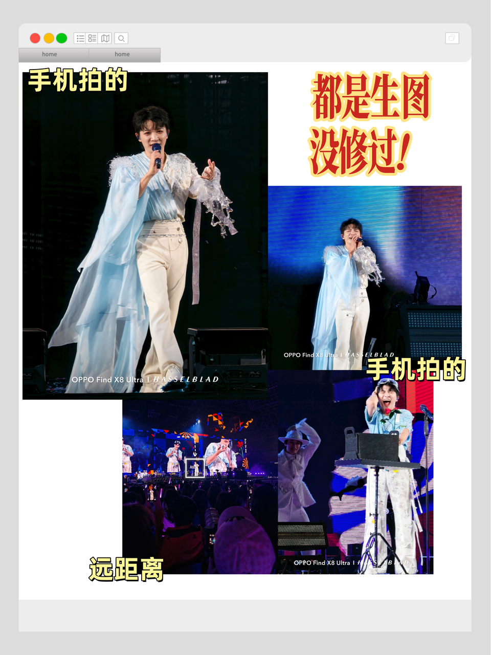 其实用手机就可以了!反正我现在去看演出就是用手机拍的,毕竟都2025年了,现在手机拍远景、暗光、人像都很清晰,像我之前就是用OPPO Find X8 Ultra拍的照片。而且最关键是手机拍照还能自带肤色还原效果,真的不用再去自己修死亡舞台灯光了!