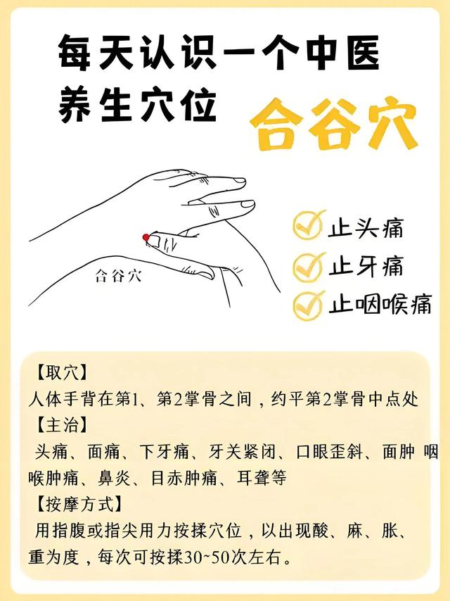 • 三维定位:手背虎口区,第1、2掌骨间凹陷处