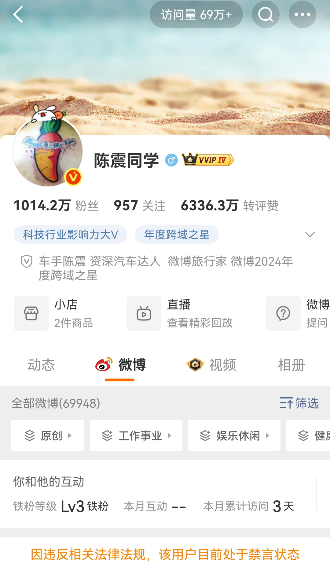 今天一大早小编发现陈震同学的多个账号被禁言,全平台所有账号都是这种情况,包括他平时只用发视频内容的账号也是这种情况。