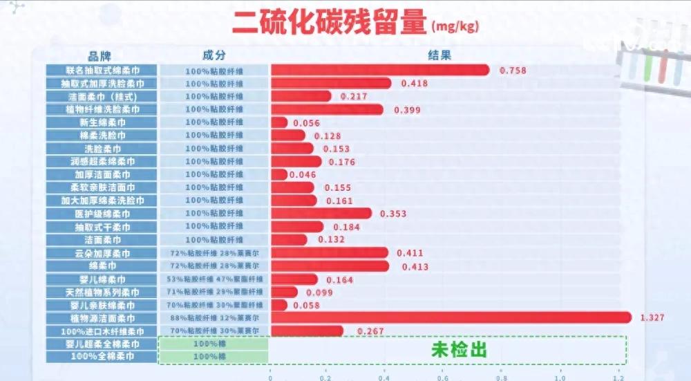 不过,大家也无需过度恐慌。21款含粘胶纤维的洗脸巾虽检出二硫化碳残留,但残留量远低于国际安全标准(如Oeko - Tex Standard 100的0.5mg/kg限值),正常使用一般不会对健康造成危害。若想追求极致安全,优先选“100% 棉”。