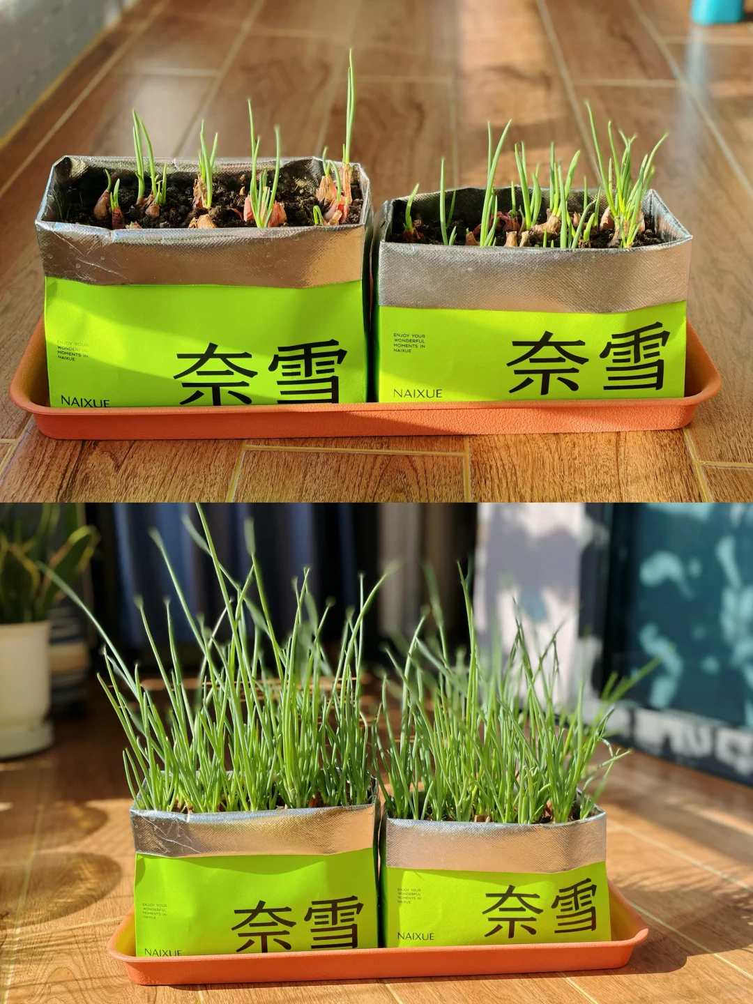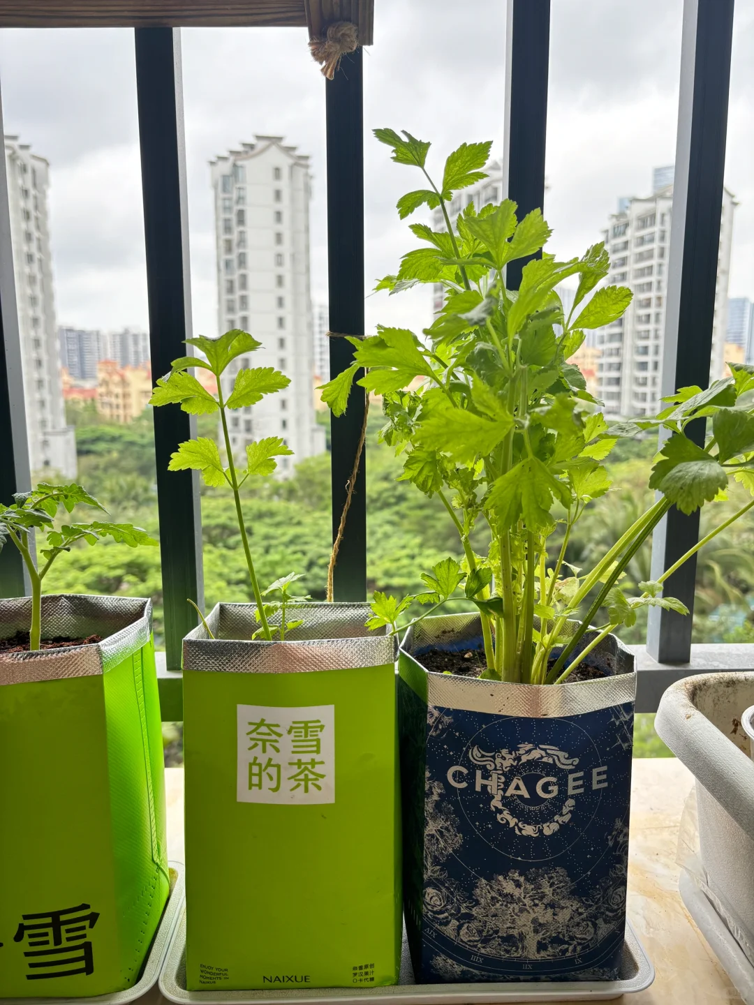 用不了太长的时间就能吃到自己种的香菜、小葱、蒜苗了,虽然不是很多,但是再也不用买香菜了,还是很省钱的。