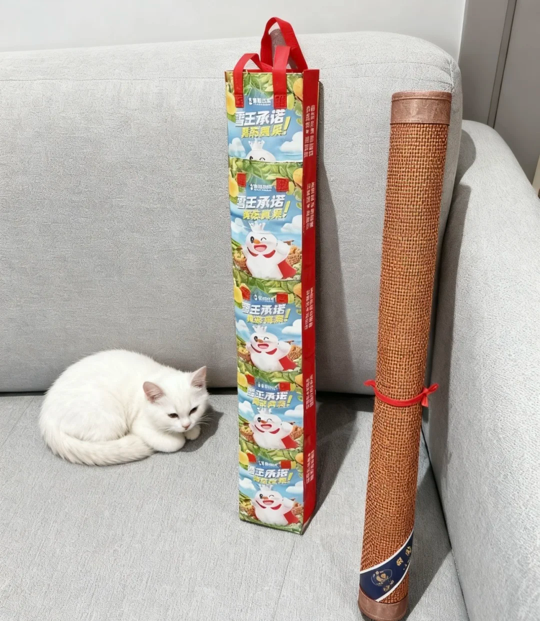 真佩服节俭的老妈,奶茶袋子竟然还能这样改造,收纳家里的垫子,沙发的凉垫还有瑜伽垫,卷起来之后不好收纳,老妈用奶茶袋子拼接在一起,做了一个深袋子,正好用来收纳垫子。