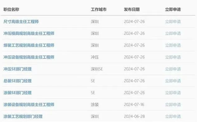 近期在多家的招聘网站上显示,宝能汽车在很多地方开始大规模的招聘员工。比如某个招聘平台显示,宝能汽车最新招聘181个职位,分布在深圳、西安、咸阳等多个地区,涉及到工艺,设备,技术研发同时在不同的平台上,宝能汽车也在招聘,包括冲压模具规划高级主任。工程师焊装工艺规划,高级主任工程师涂装设备规划,高级主任工程师等等众多岗位。
